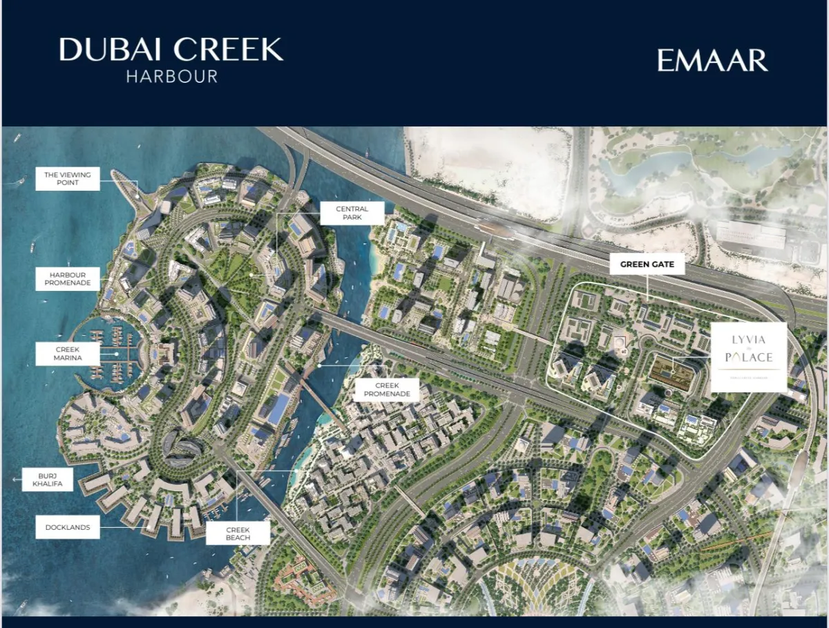 It is integrated within the master-planned Creek Harbour community, which combines residential, retail, leisure, and hospitality zones. Palace Residences+1